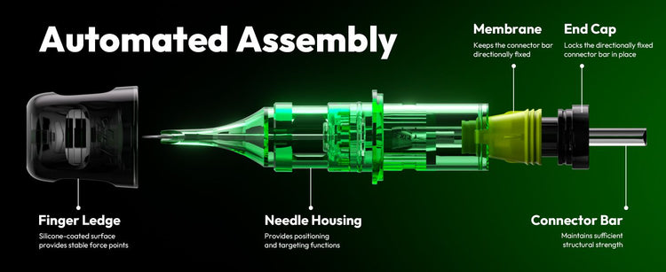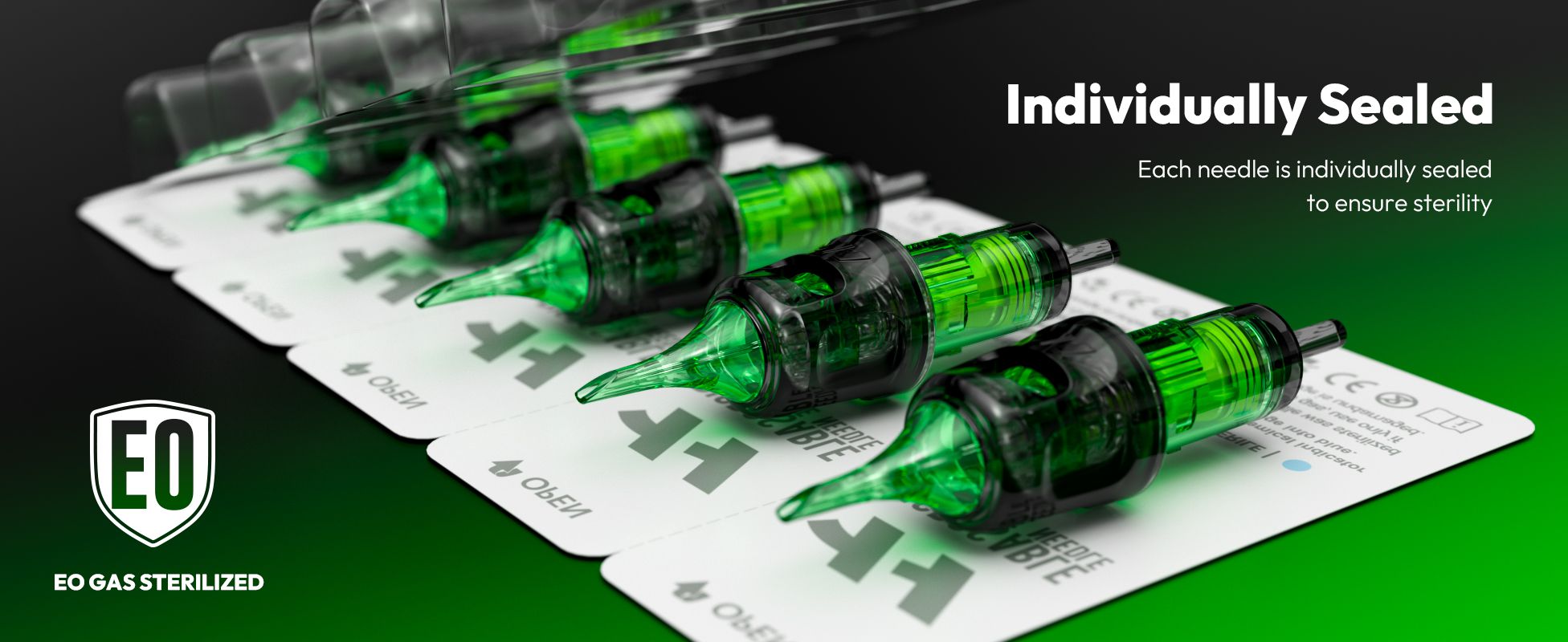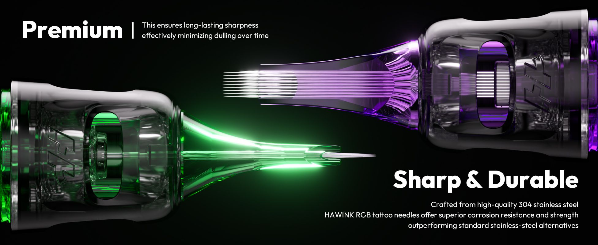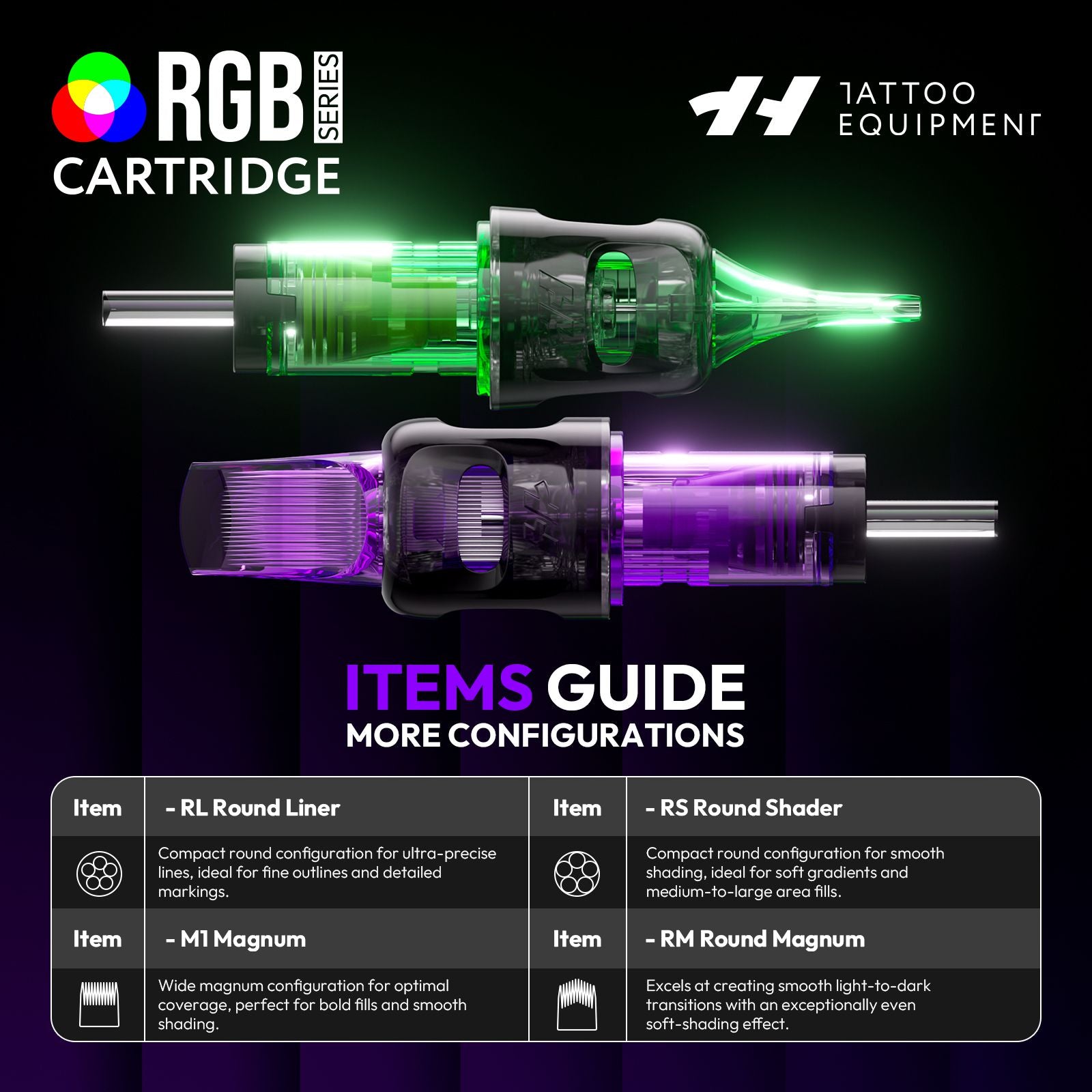 Master your art with RGB tattoo needles. Engineered with optimized stable cartridges structure, precise ink flow, and an ergonomic finger ledge for ultimate control.